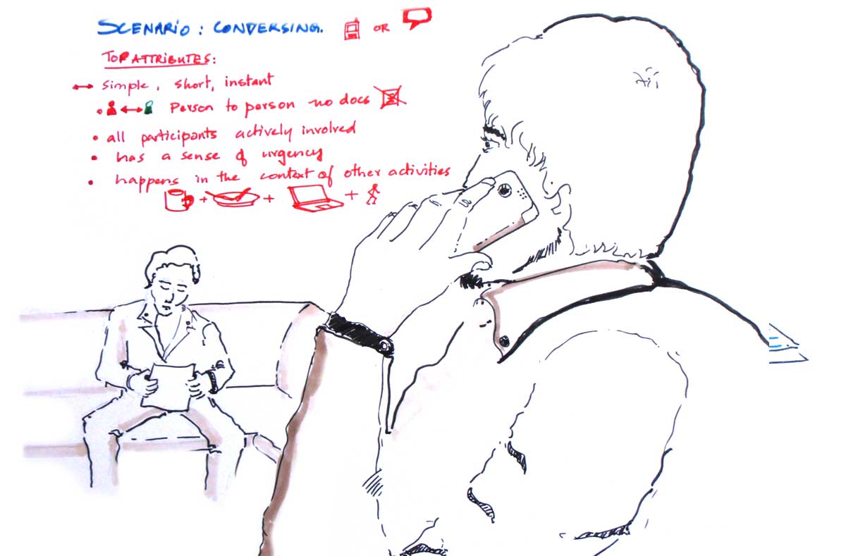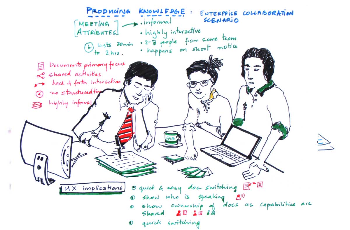 Communication and Collaboration has a lot of modalities. Here was some brainstorming sketches I did to get buy in for some of the modes.